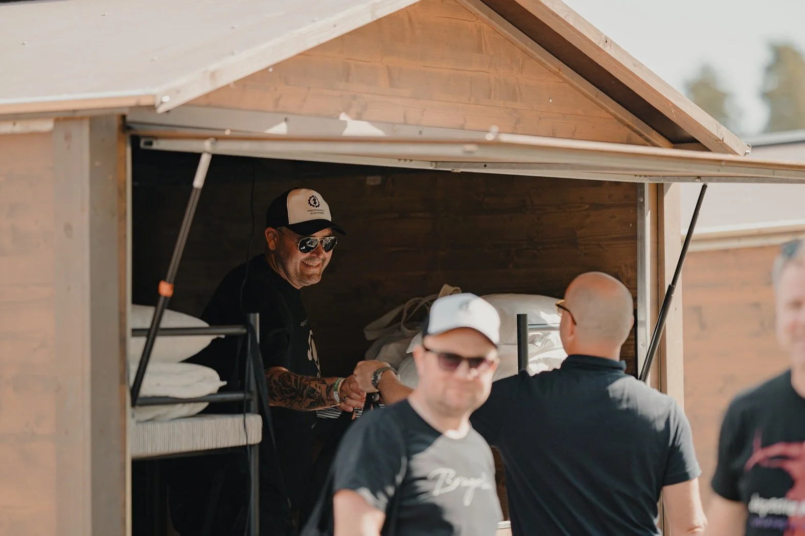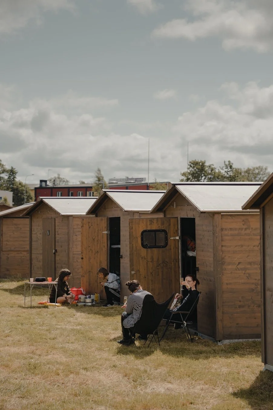 Pop-up stugorna som har använts alla tidigare år. Ett bekvämare väl om man vill bo på campingen utan att behöva bo i tält.
