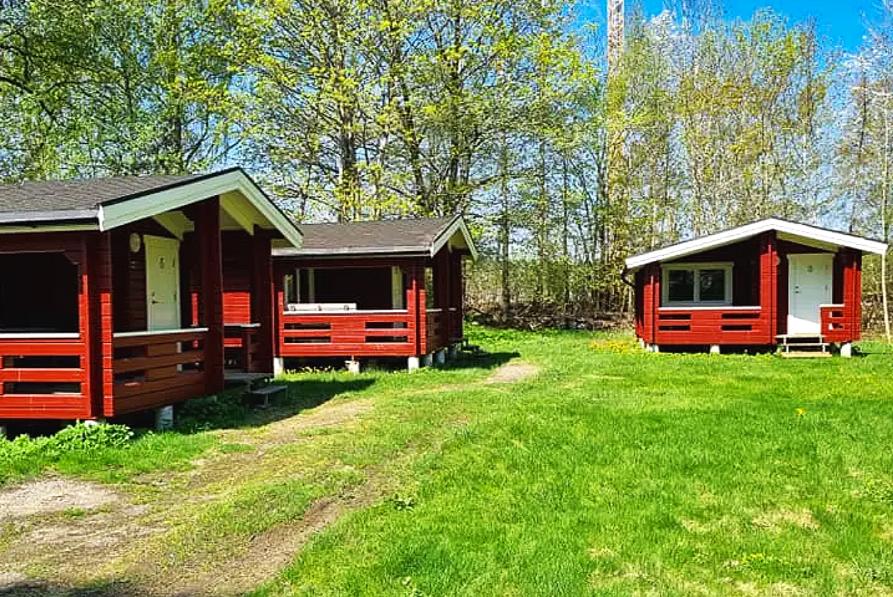 Våra största stugor med en större altan, mer plats inomhus och tillhörande kylskåp.